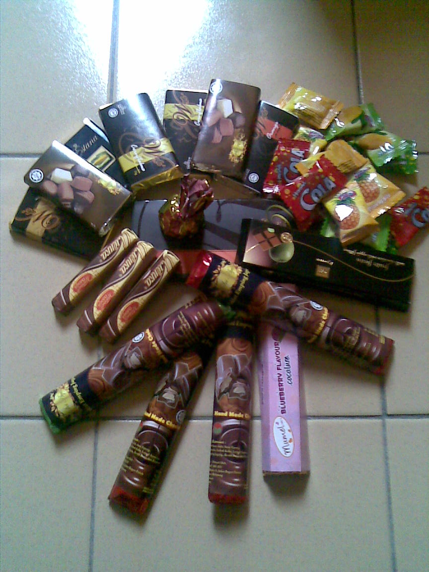 Ok...ni coklat yang dibeli oleh saya dan kawan2..oleh sebab menghadapi keboringan yang agak melampau ketika itu...Kami pun main2 susun coklat..........Takdala lawa sangat...saja ja nk buang karan...huhu